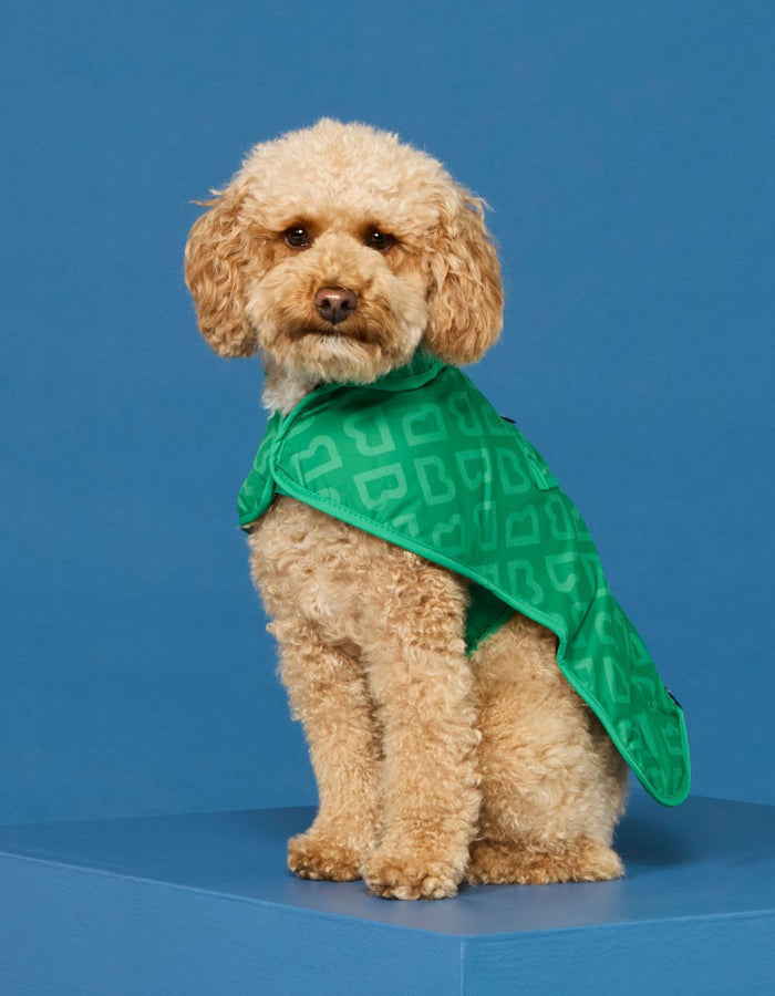 Featuring fuzzy fleece lining, a velcro adjustable chest strap and tip pockets to store poop bags, the jacket is available in three sizes to cater to all our four-legged pals and comes in both the Park Green and Puddle Blue colourway.